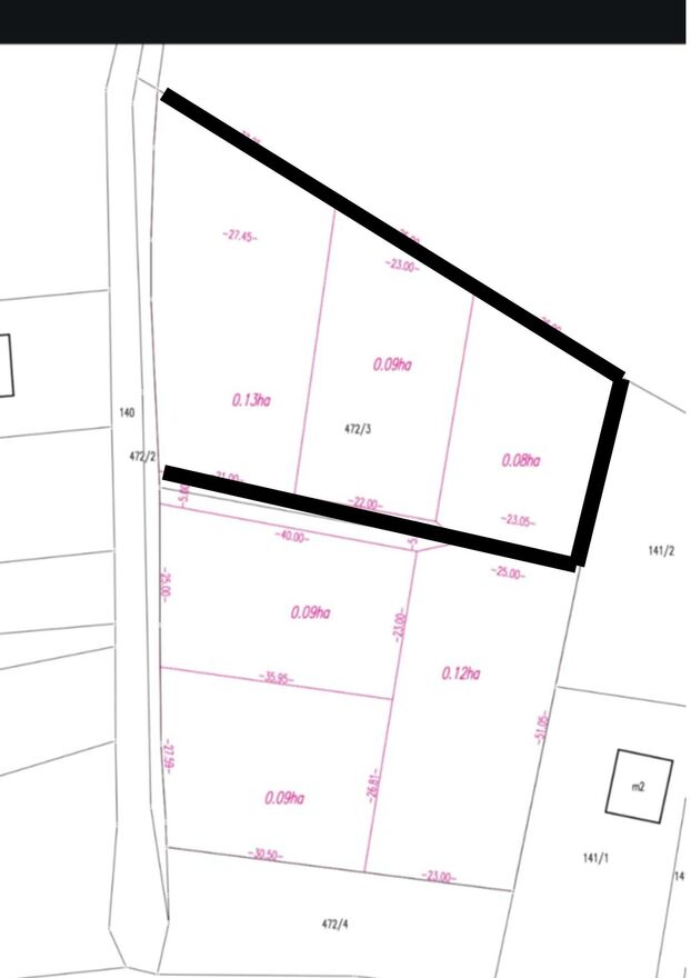 Na zdjęciach wizualizacja możliwego podziału nieruchomości na trzy działki.